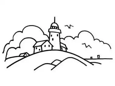 风景建筑带颜色简笔画