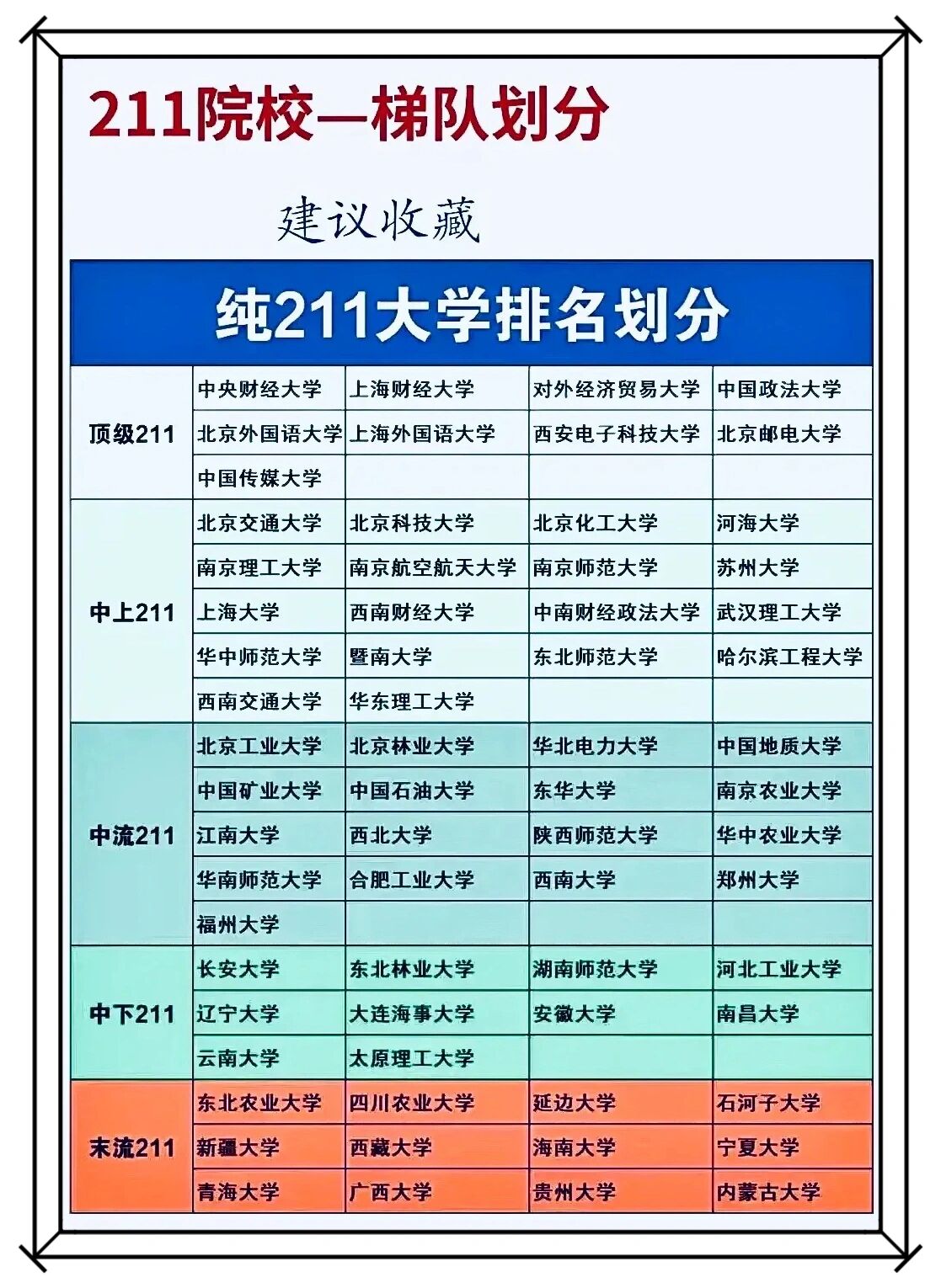 211大学分为4个档次第一档未来可期最后一档处境尴尬
