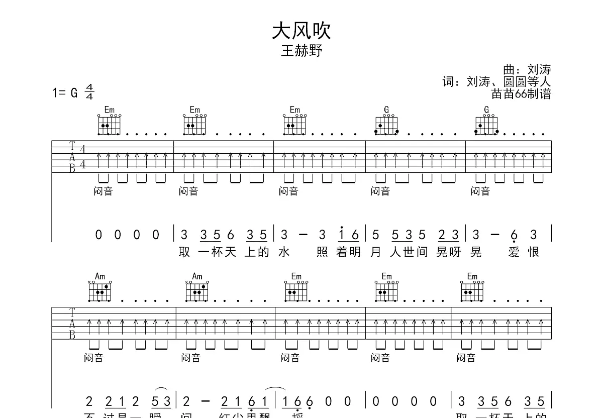 大风吹_简谱_歌谱_曲谱_吉他谱_五线谱