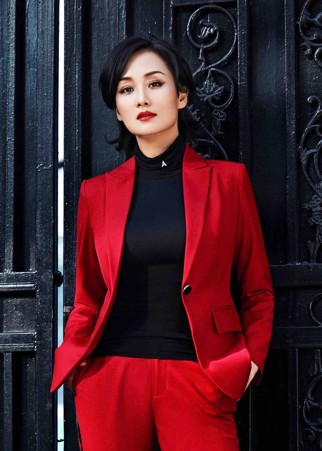 52岁李颖越看越有魅力穿呢绒风衣搭吊带衫贵妇衣品真绝