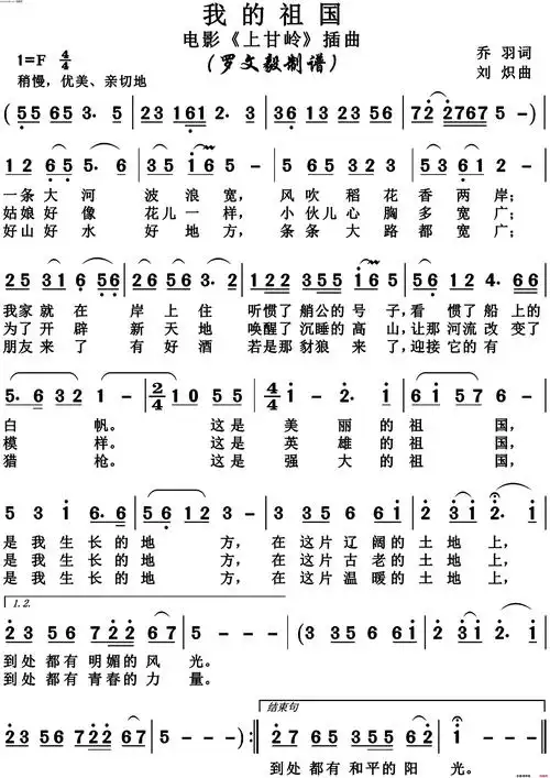 我的祖国(电影《上甘岭》插曲)曲谱,吉他谱简谱歌词-西西音乐下载站