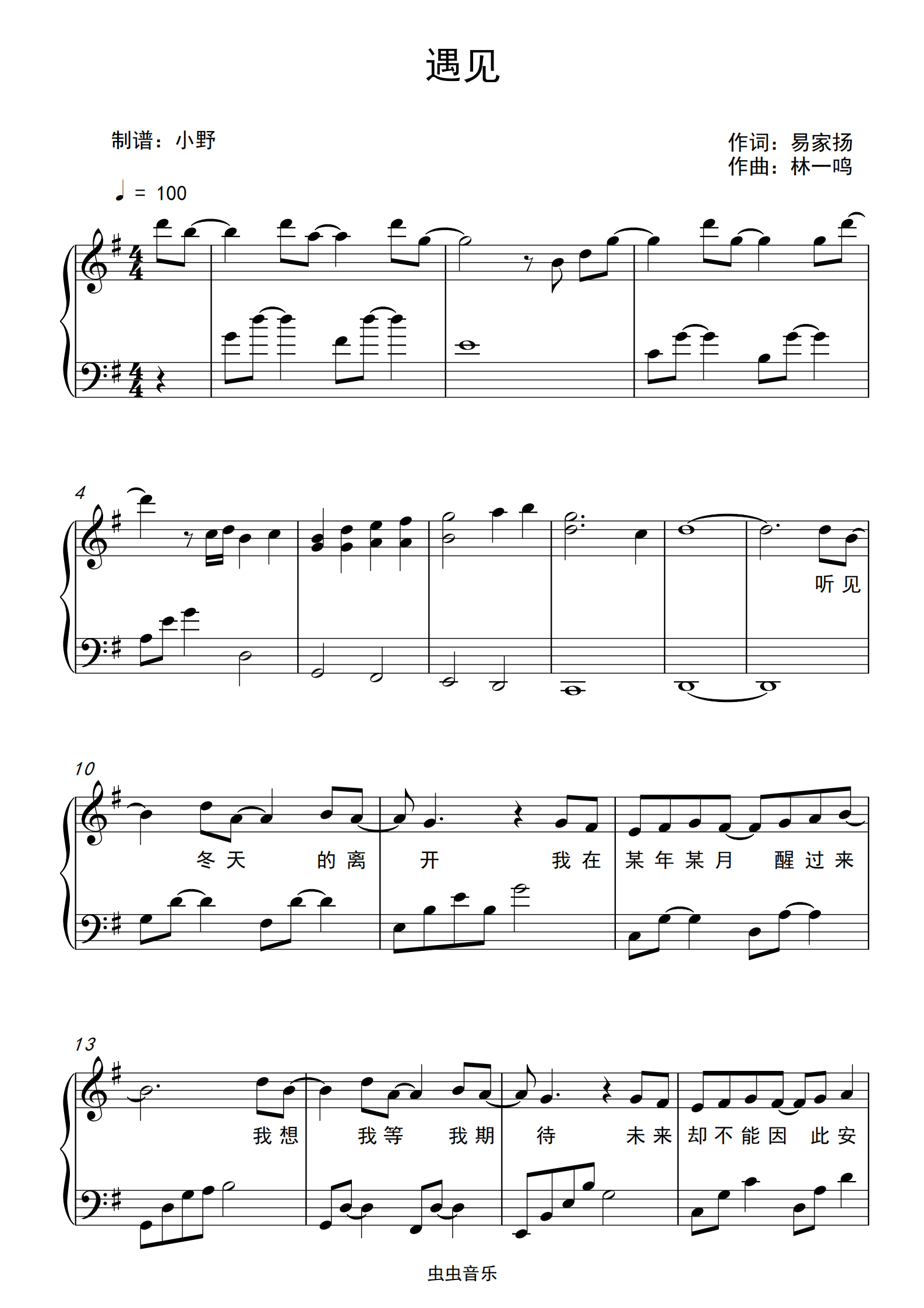 遇见c调 最易上手钢琴谱-虫虫乐谱