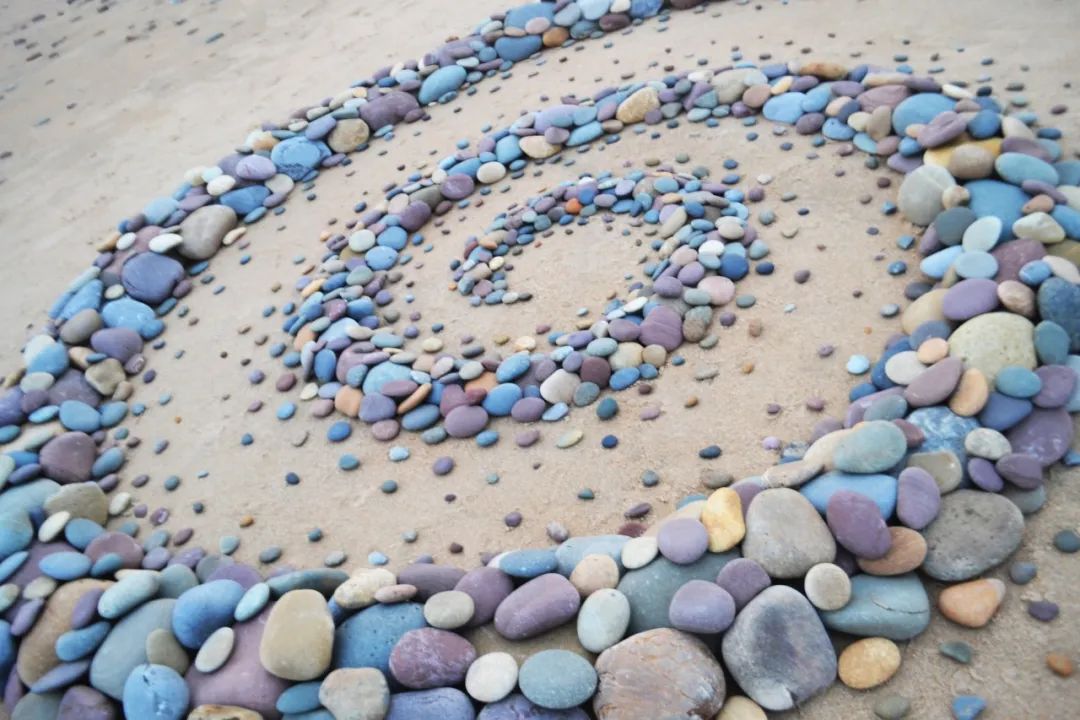 沙滩上用石头摆的图案,有没有惊艳到你?