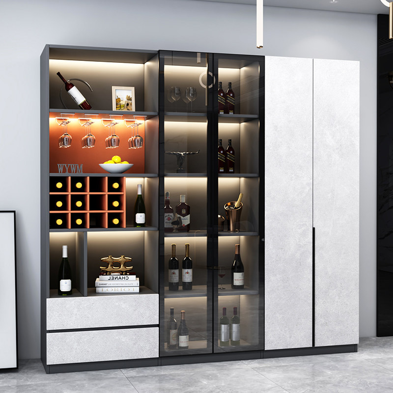 客厅酒柜轻奢高档储物柜现代简约餐边柜一体靠墙玻璃门酒柜