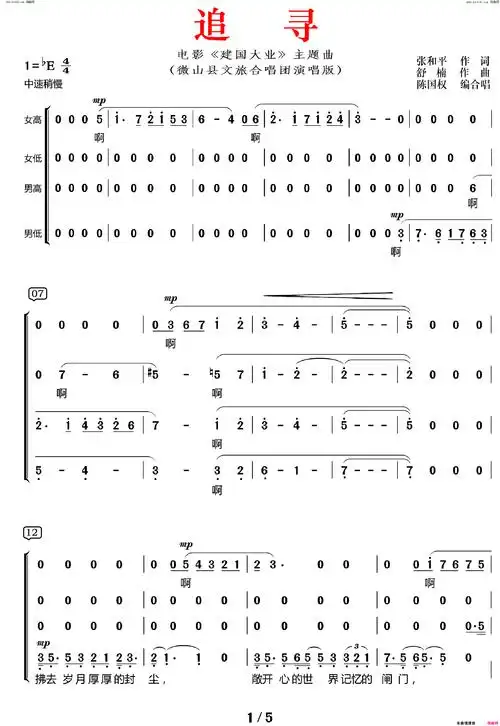追寻(电影《建国大业》主题曲混声合唱)简谱 - 曲谱歌词网