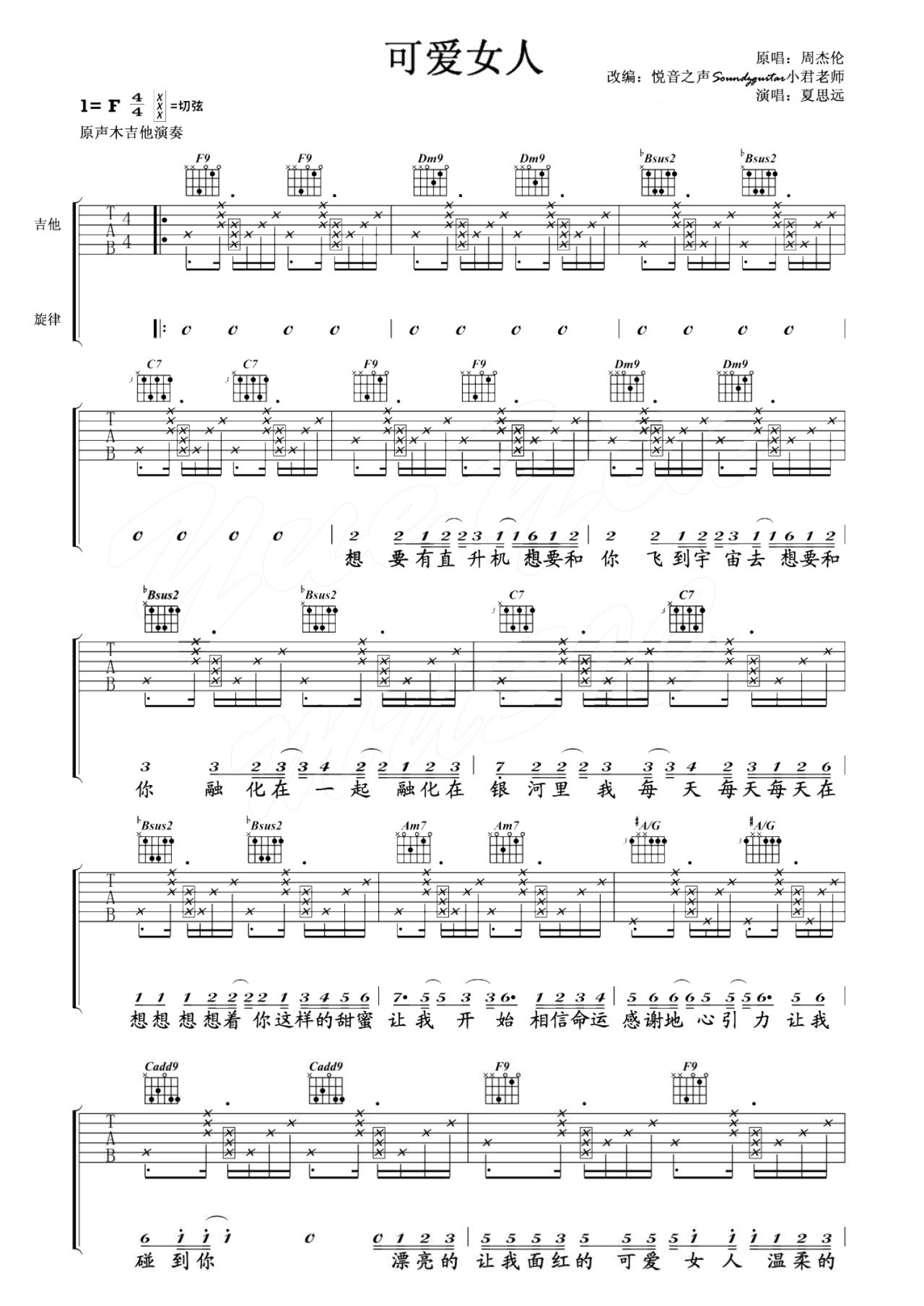周杰伦周杰伦可爱女人吉他谱吉他谱