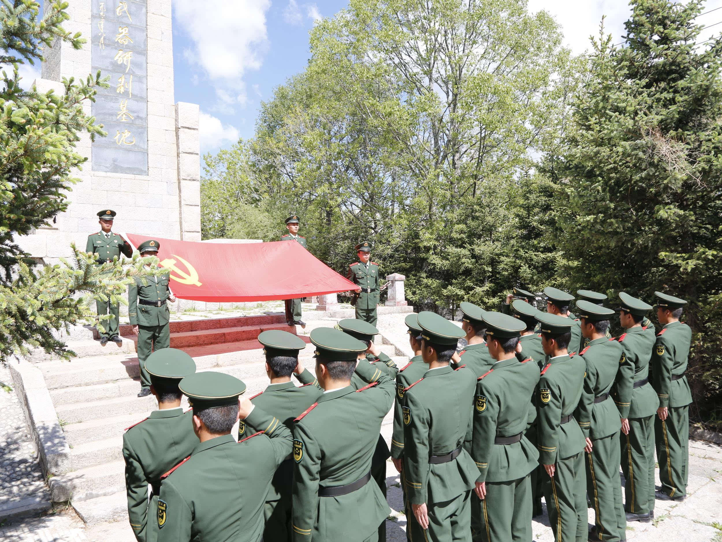 官兵们在纪念碑前重温入党誓词官兵们为烈士敬献花篮结束缅怀之旅后该