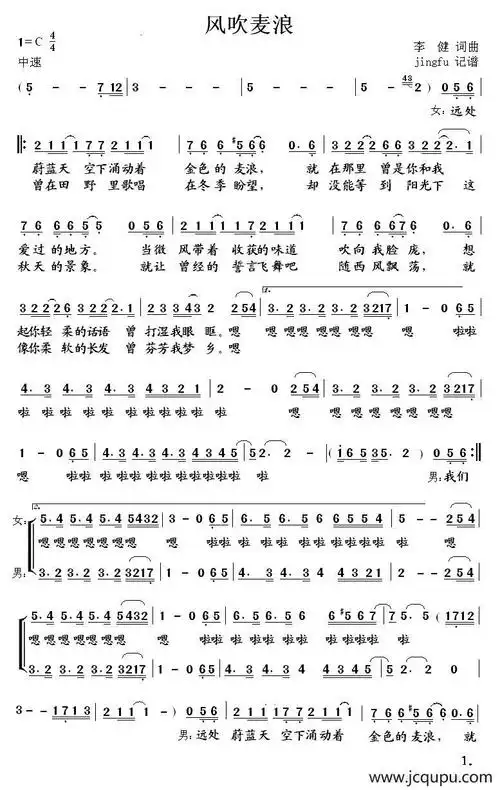 李建风吹麦浪简谱_简谱_歌词曲谱