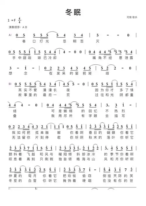 冬眠简谱-司南歌曲-孙世彦曲谱2