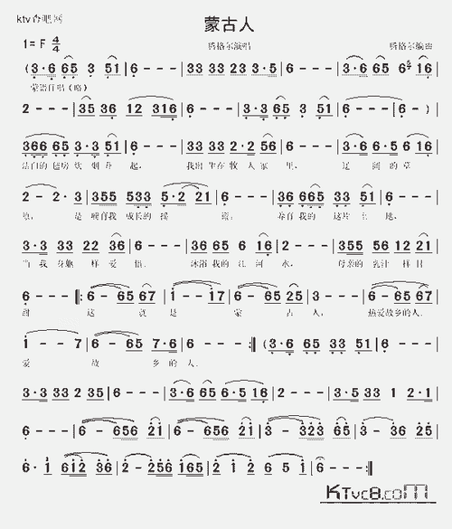 蒙古人_歌谱简谱_哆来咪123曲谱网