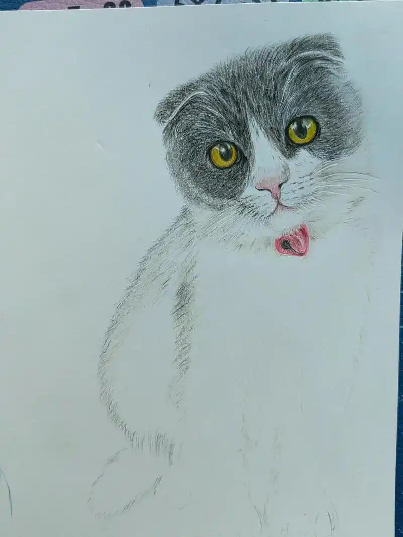 彩铅手绘 ,我家的折耳猫 - 抖音