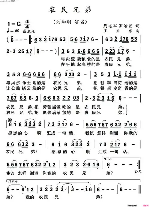 农民兄弟_农民兄弟简谱_农民兄弟吉他谱_钢琴谱-查字典简谱网
