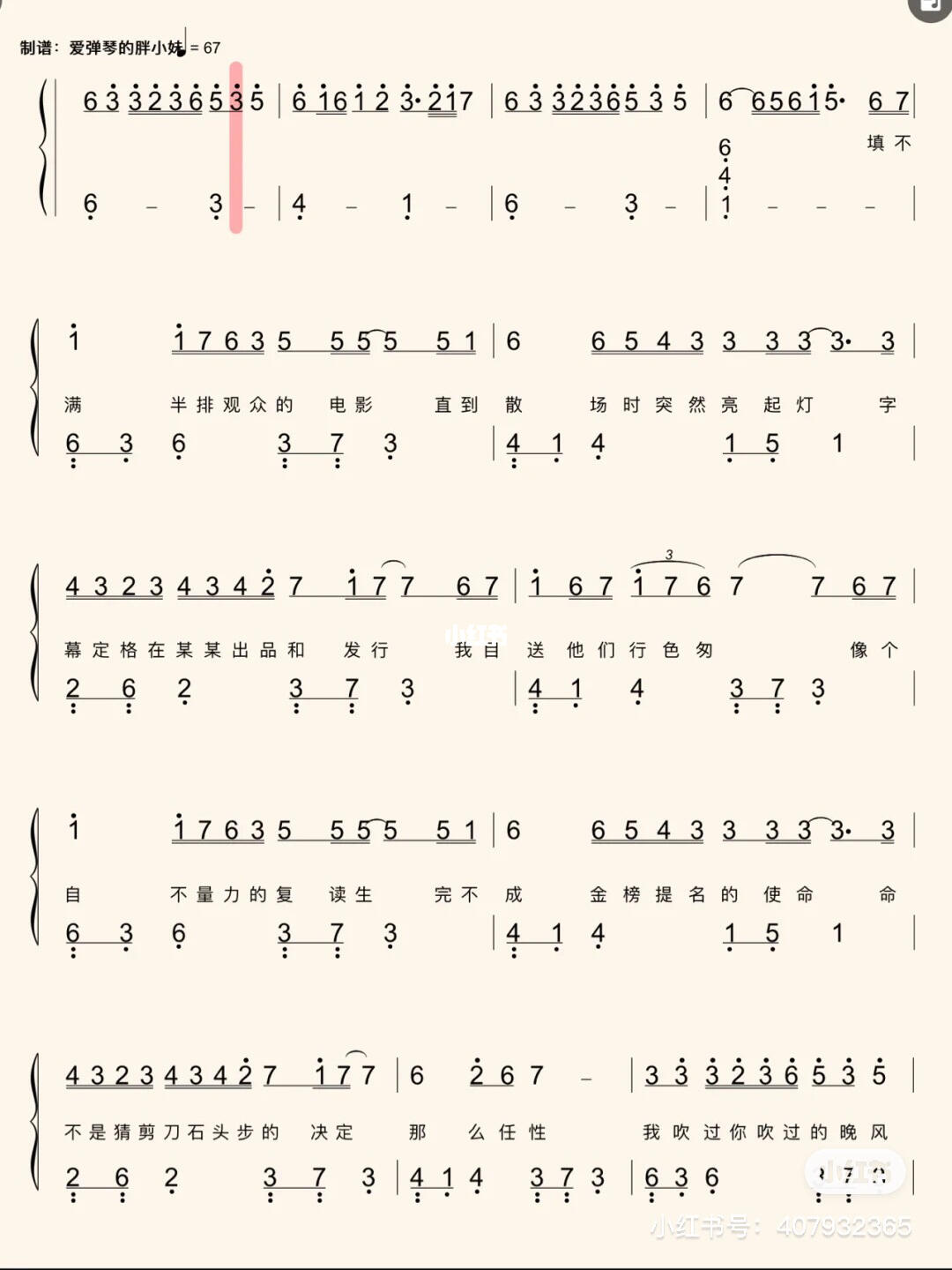 错位时空完美版双手数字简谱钢琴谱带歌词pdf5页错位时空钢琴谱,附