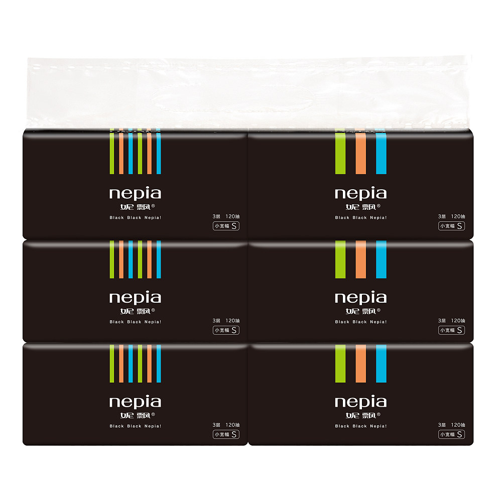 妮飘 nepia 抽纸 炫酷黑郁薄荷系列3层120抽软抽*18包纸巾整箱销售