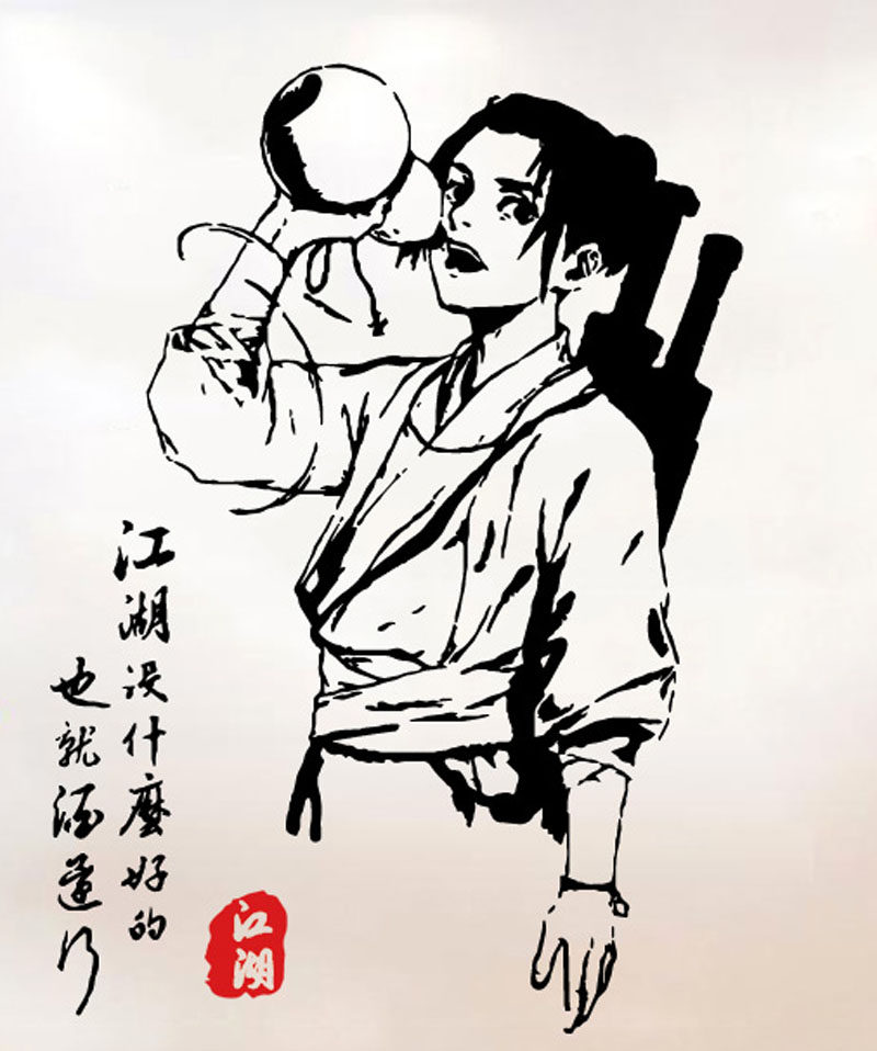 古风剑来江湖墙贴纸中式少年侠客饮酒贴画酒馆寝室卧室客厅墙贴