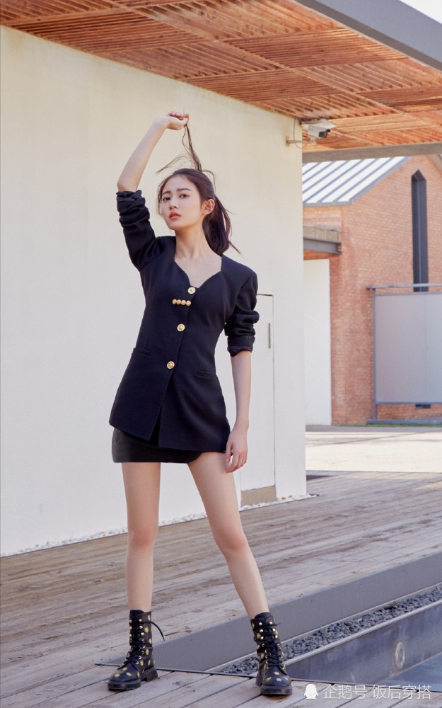 陈钰琪也太a了吧!黑色西装裙搭配马丁靴,大长腿不输老板唐嫣