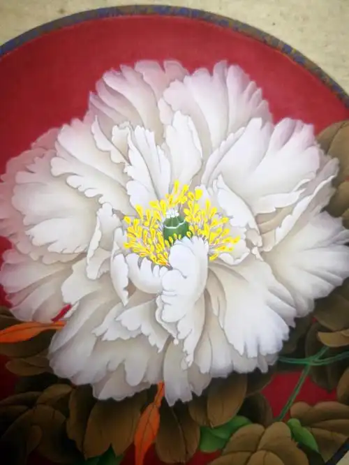 工笔团扇牡丹白板玉完成步骤