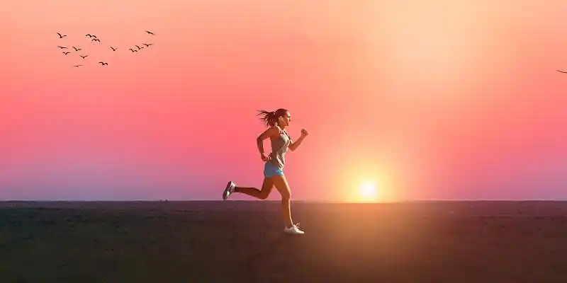 夕阳场景夕阳下努力奋斗奔跑展板背景奋斗奔跑背景