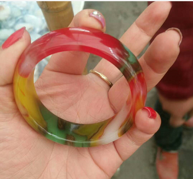 七彩玛瑙加宽加厚玉手镯