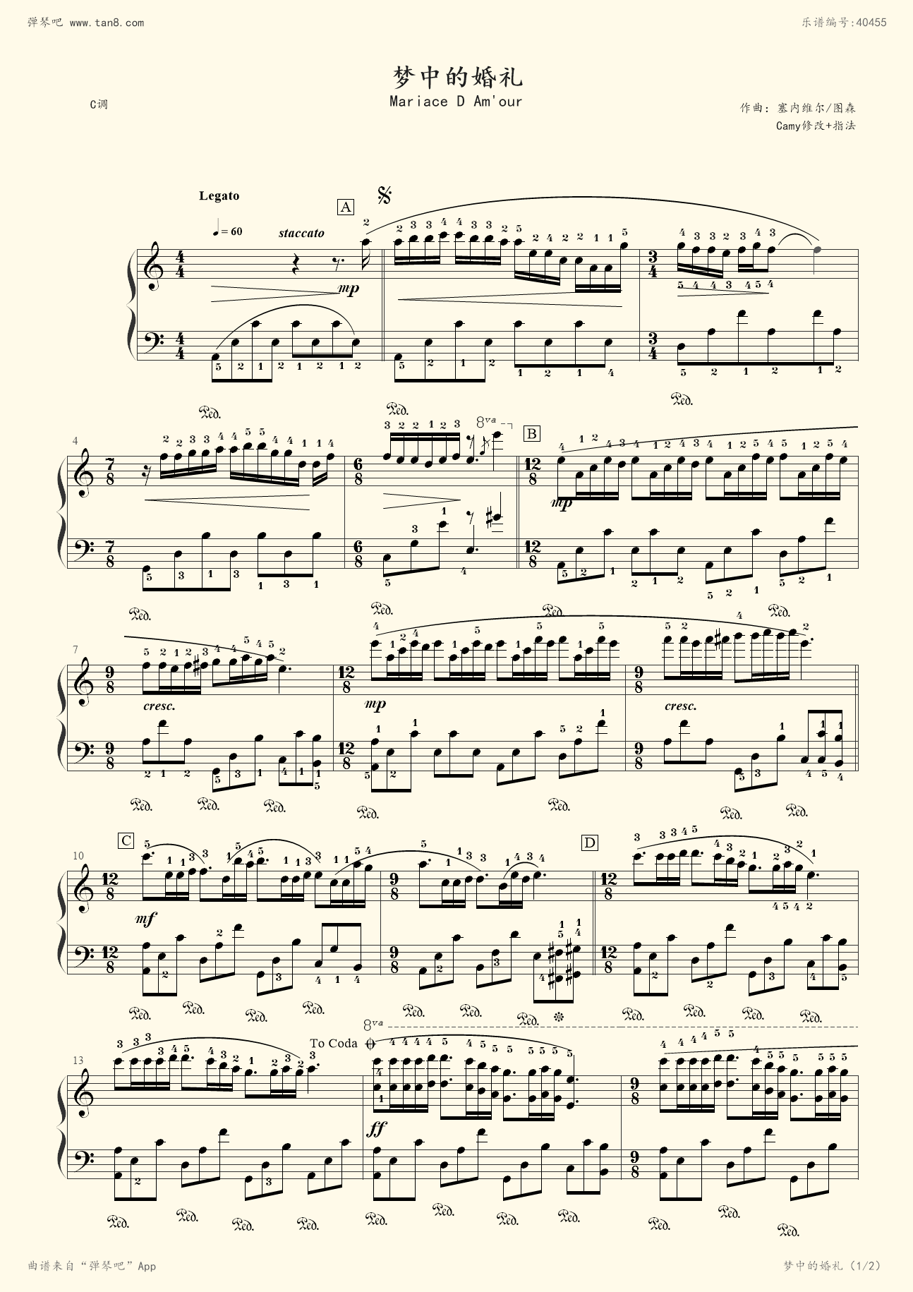 梦中的婚礼钢琴简谱,要数字的,要准确的