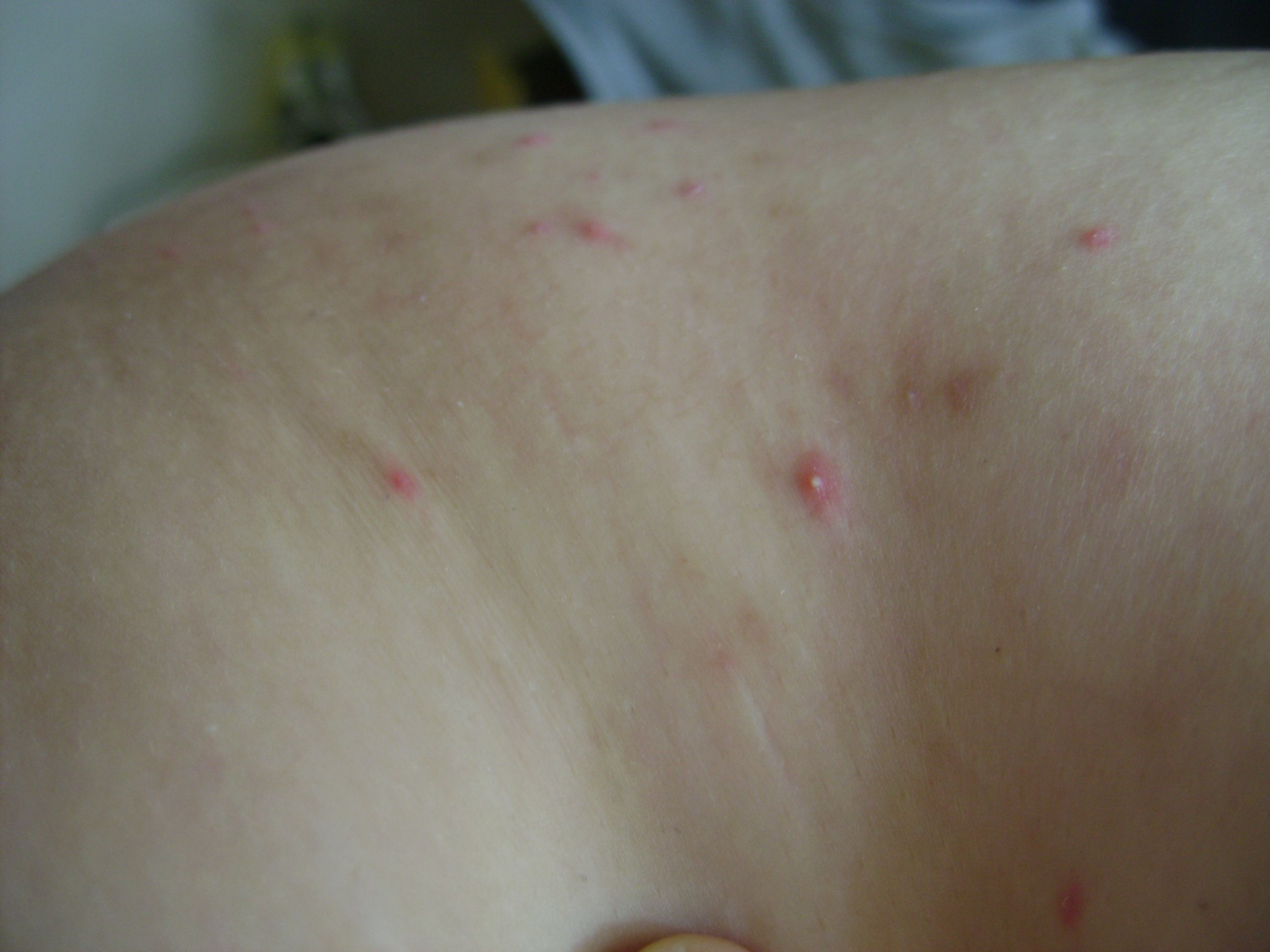 孩子身上起的,中间是白点,周围有红晕,白点开始时针尖大小,会涨到小