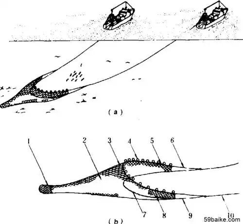 渔法 根据渔船甲板布置特点, 双船拖网作业可分前