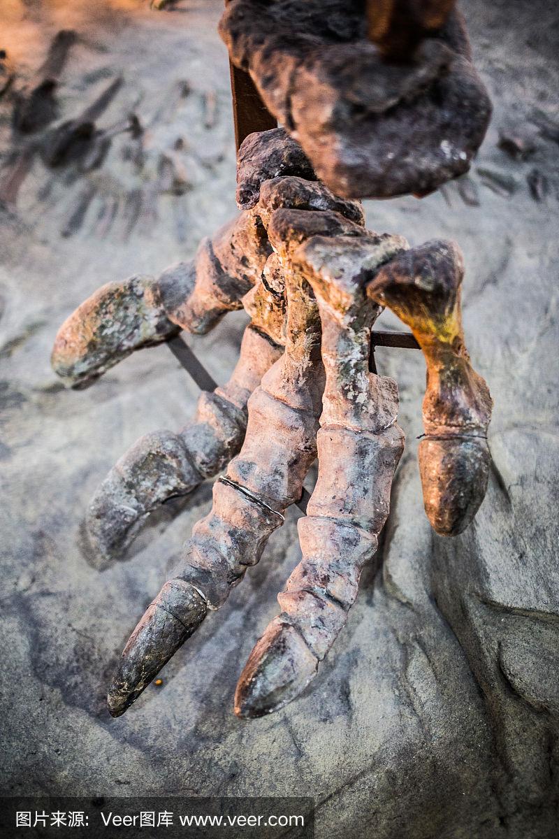 恐爪龙的化石复制品,注意后肢上翘起的第二脚趾霸王龙"斯坦"的头骨
