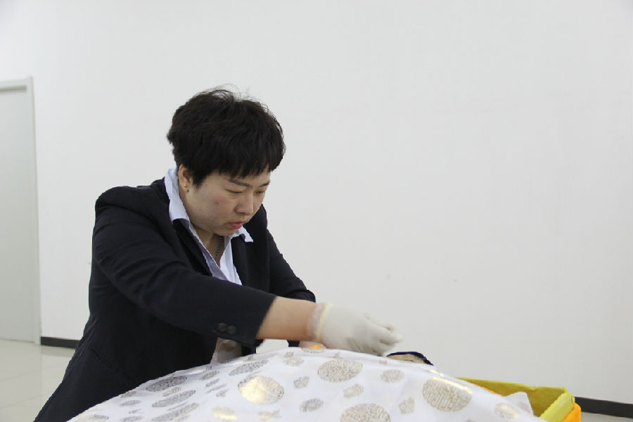 彭彩红在为遗体化妆(上海市殡葬服务中心 供图)