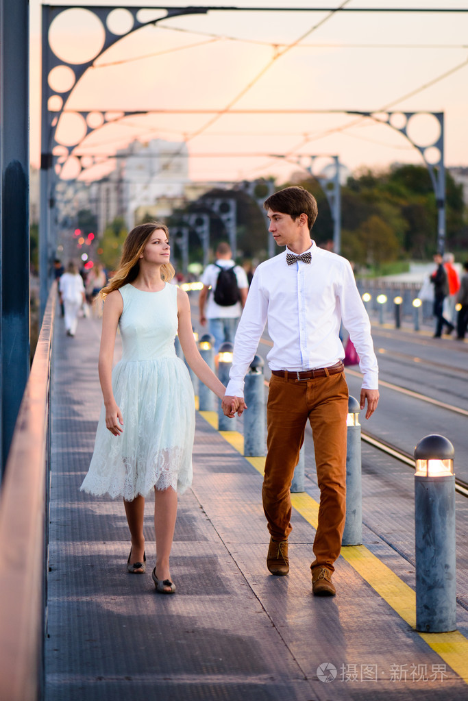 恩爱夫妻站在桥上