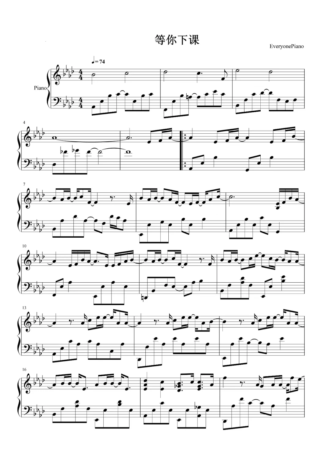 《等你下课》钢琴谱
