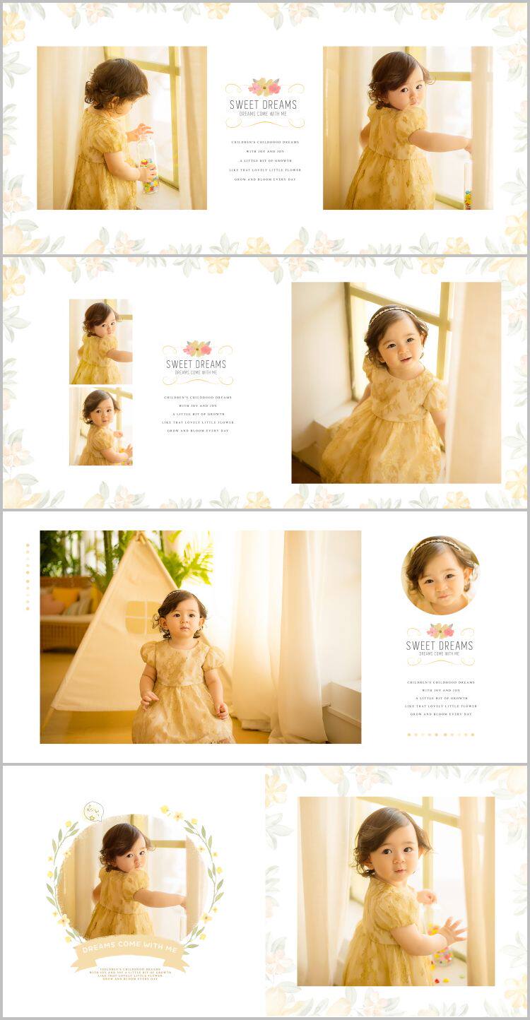 漂亮女孩儿童摄影满月周岁样照片相册影集版面排版ps模板设计素材