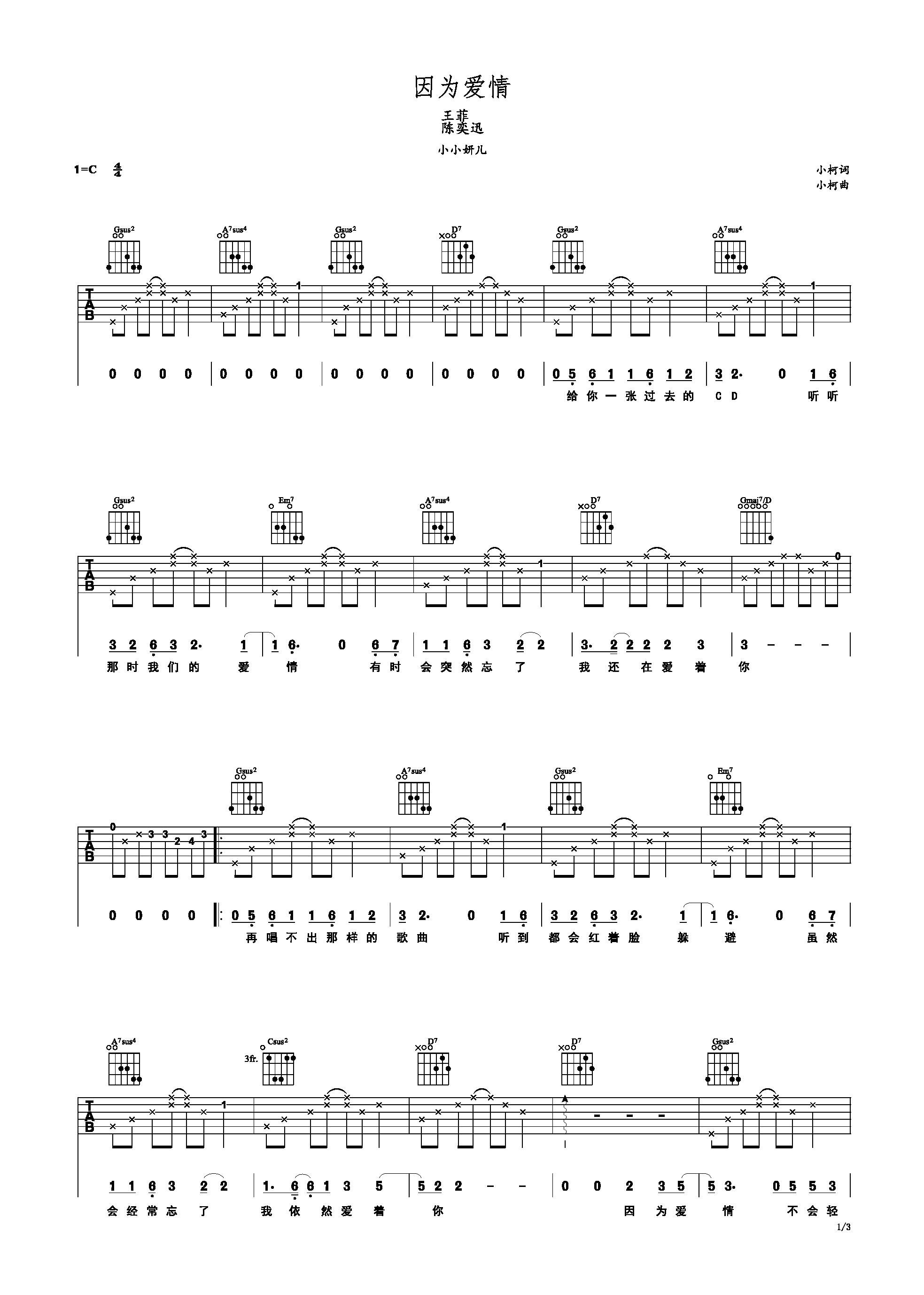 因为爱情 c调 陈奕迅/王菲c调六线吉他谱-虫虫吉他谱免费下载