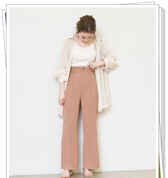 2221酷之依纯雪纺方领泡泡袖阔腿裤两件套米色粉色大货已出,女装套装