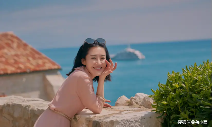 51岁许晴粉色时尚纱裙优雅高级,短发造型年轻10岁不止