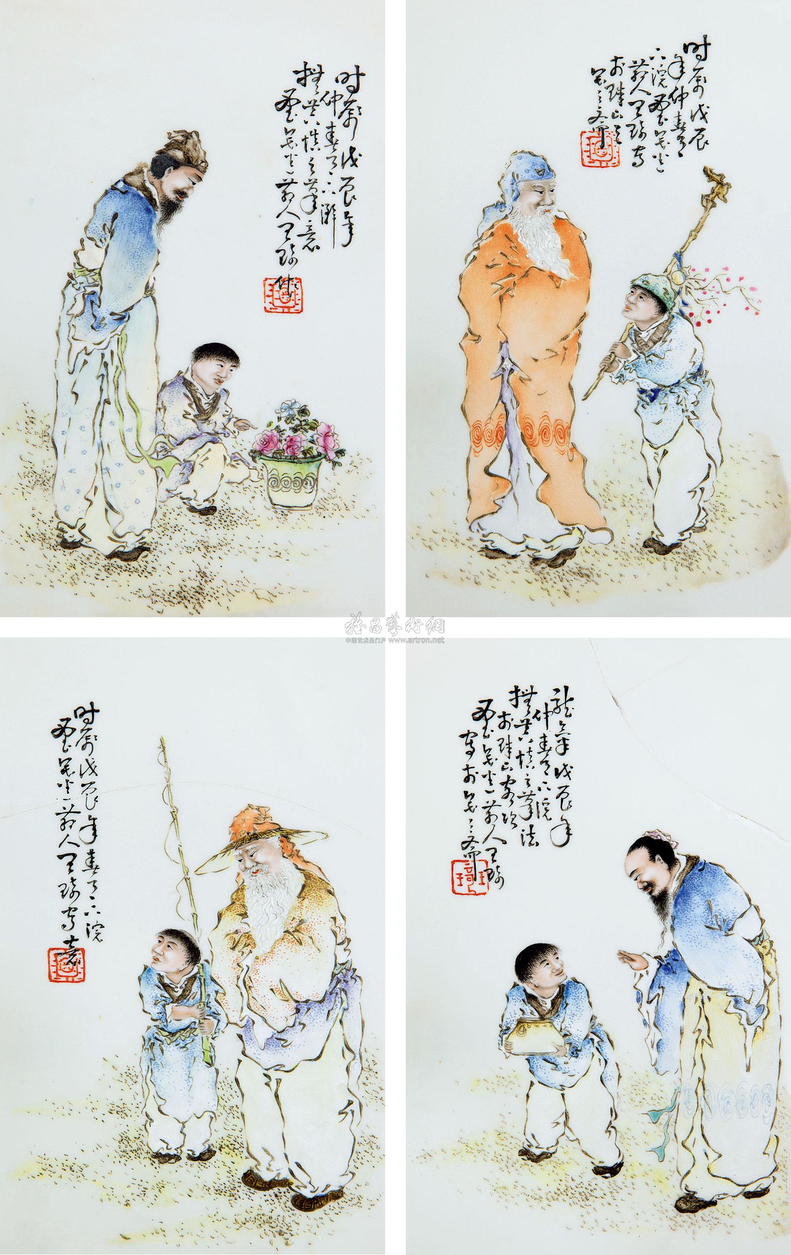 0761 民国 王琦人物瓷板四枚