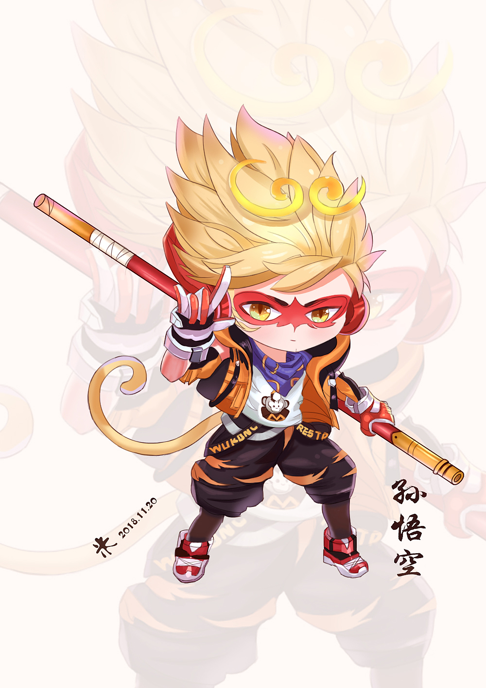 工笔绘画大闹天宫萌猴纸孙悟空高清背景图片(2)