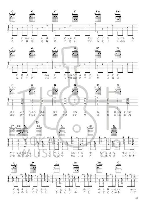 lemon吉他谱g调和弦编配变调夹4品为原b调高清六线谱优咔音乐视频弹唱