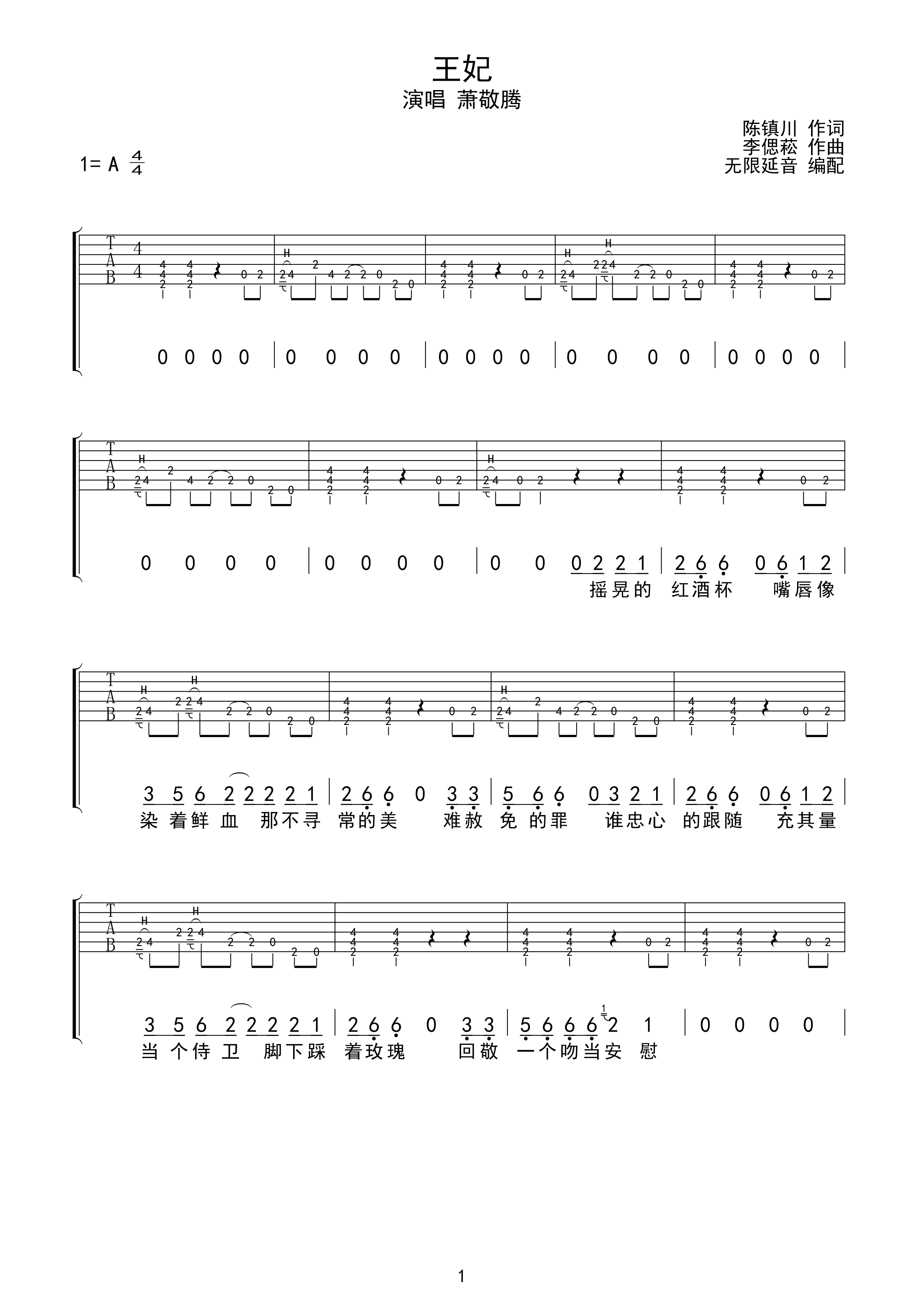 王妃(吉他六线谱)_简谱