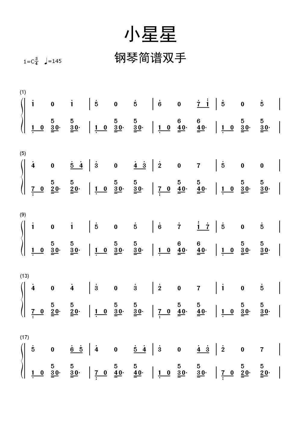 小星星钢琴谱小星星钢琴谱小星星钢琴谱