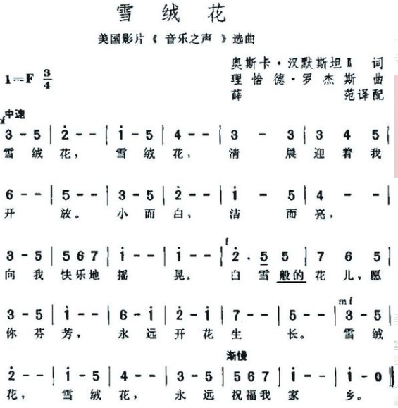 雪绒花美国电影音乐之声插曲简谱