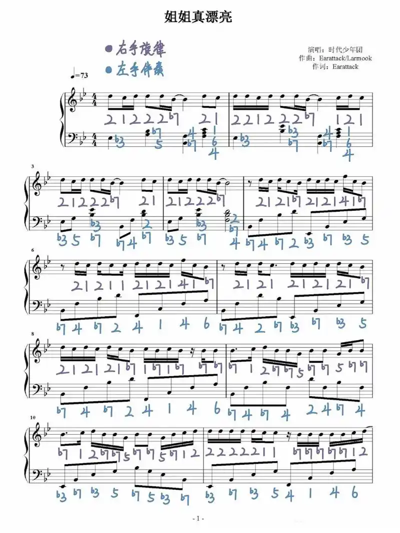 tnt时代少年团《姐姐真漂亮》钢琴谱(附简谱)~|||调号: - 抖音