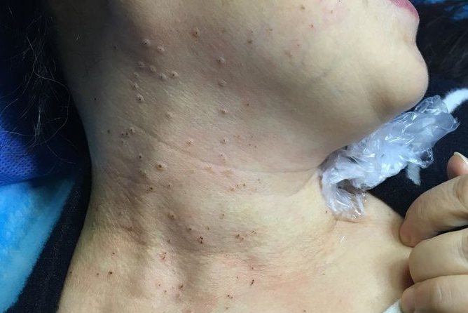 女性脖子扁平疣图片