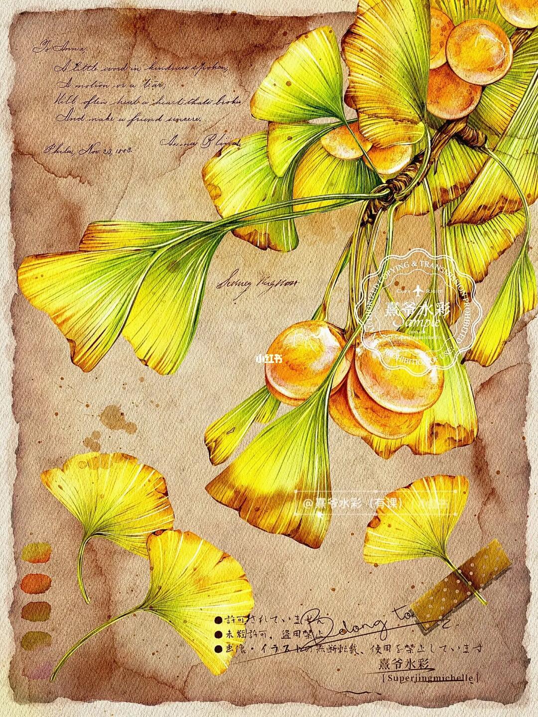 『银杏』水彩板绘