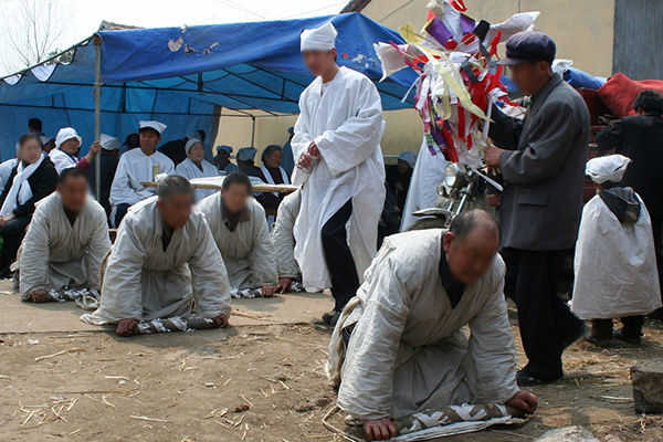 山西黄土地葬礼出殡时孝子们身上要带2个馒头