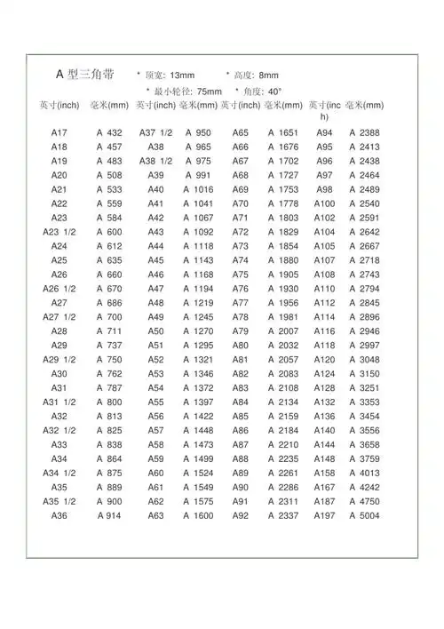 标准三角带尺寸表711a三角带表类文书