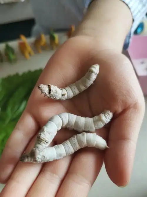 4龄蚕长成了一个个又长又白又胖的小胖墩,它们一直不停的吃吃吃…胃口