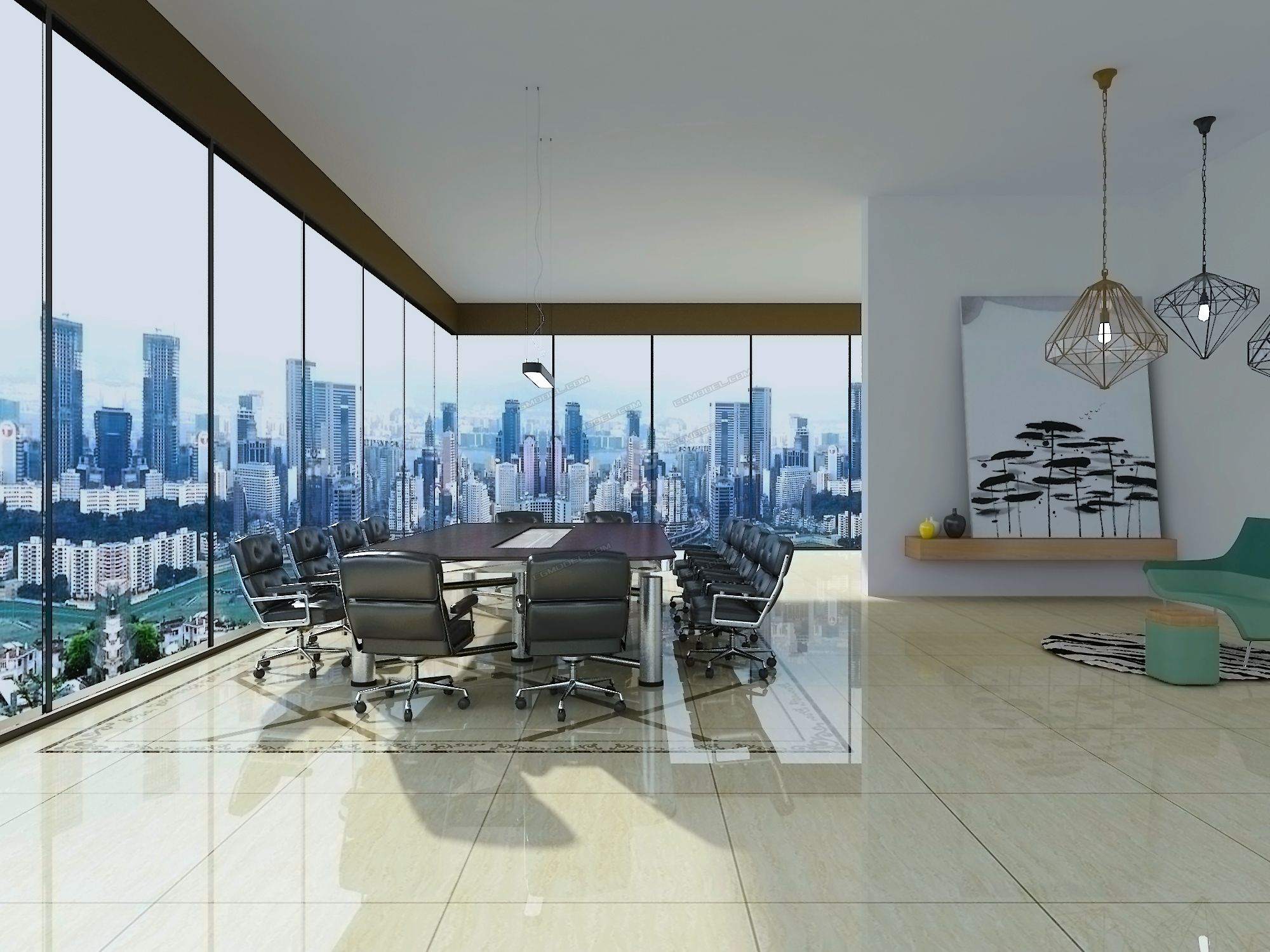 现代办公室 办公桌 办公椅 书柜 吊灯贴图贴图下载_现代办公室 现代