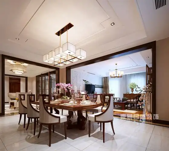 银湖翡翠中式美式混搭风格装修效果图