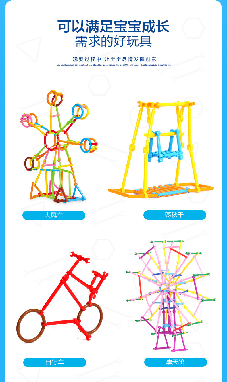 万代聪明棒儿童魔术棒拼装积木塑料拼擦玩具1-2-3岁幼儿园男孩女孩