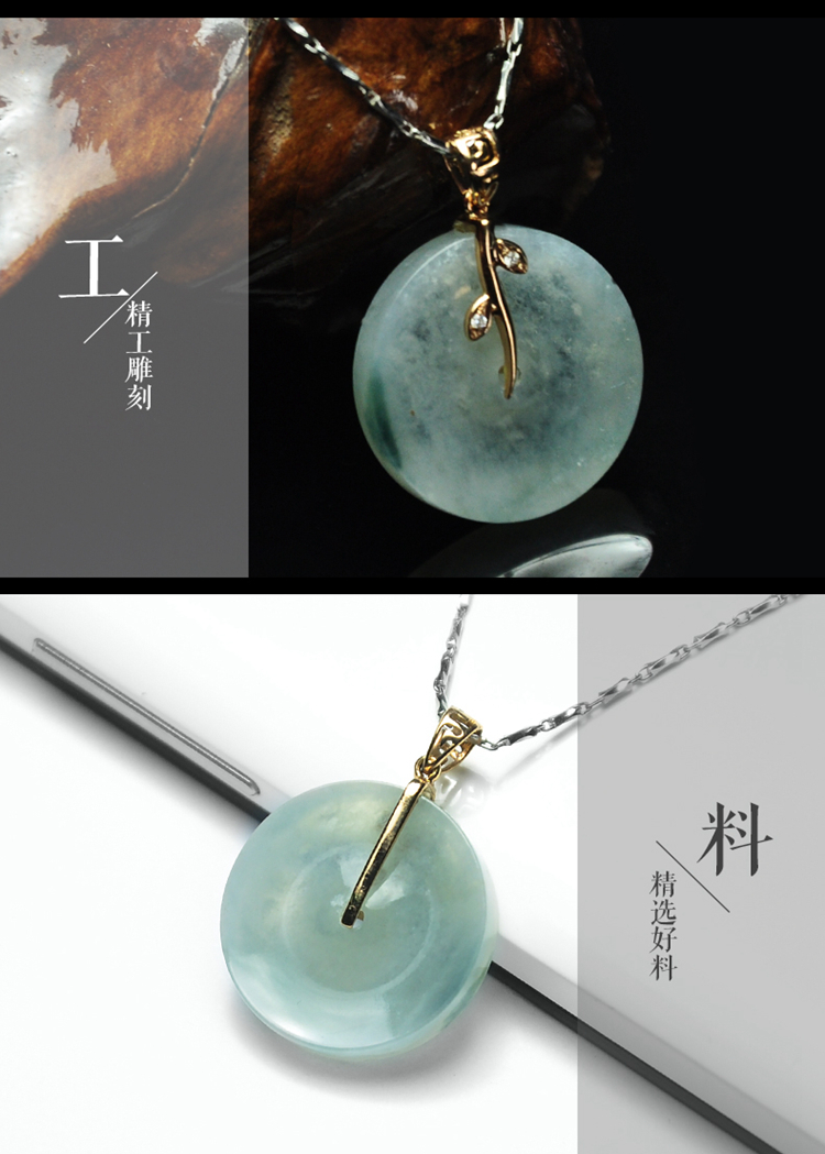 天然翡翠吊坠玉石女士镶嵌金镶嵌18k圆牌平安平安扣颈饰